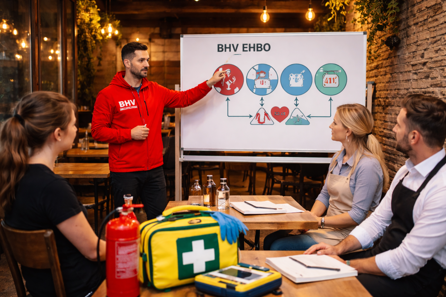Horecabedrijven kiezen voor BHV voor de Horeca omdat wij BHV-trainingen aanbieden die naadloos aansluiten op de dagelijkse praktijk binnen restaurants, cafés en hotels. Onze BHV-cursussen worden altijd incompany, op locatie bij het horecabedrijf verzorgd, zodat medewerkers trainen in hun eigen werkomgeving en direct leren omgaan met praktijksituaties.