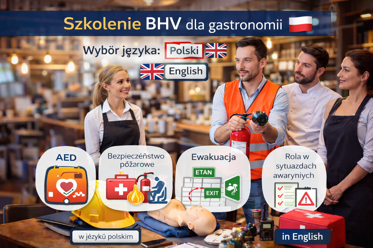 - BHV-trainingen in het Nederlands, Engels en Pools