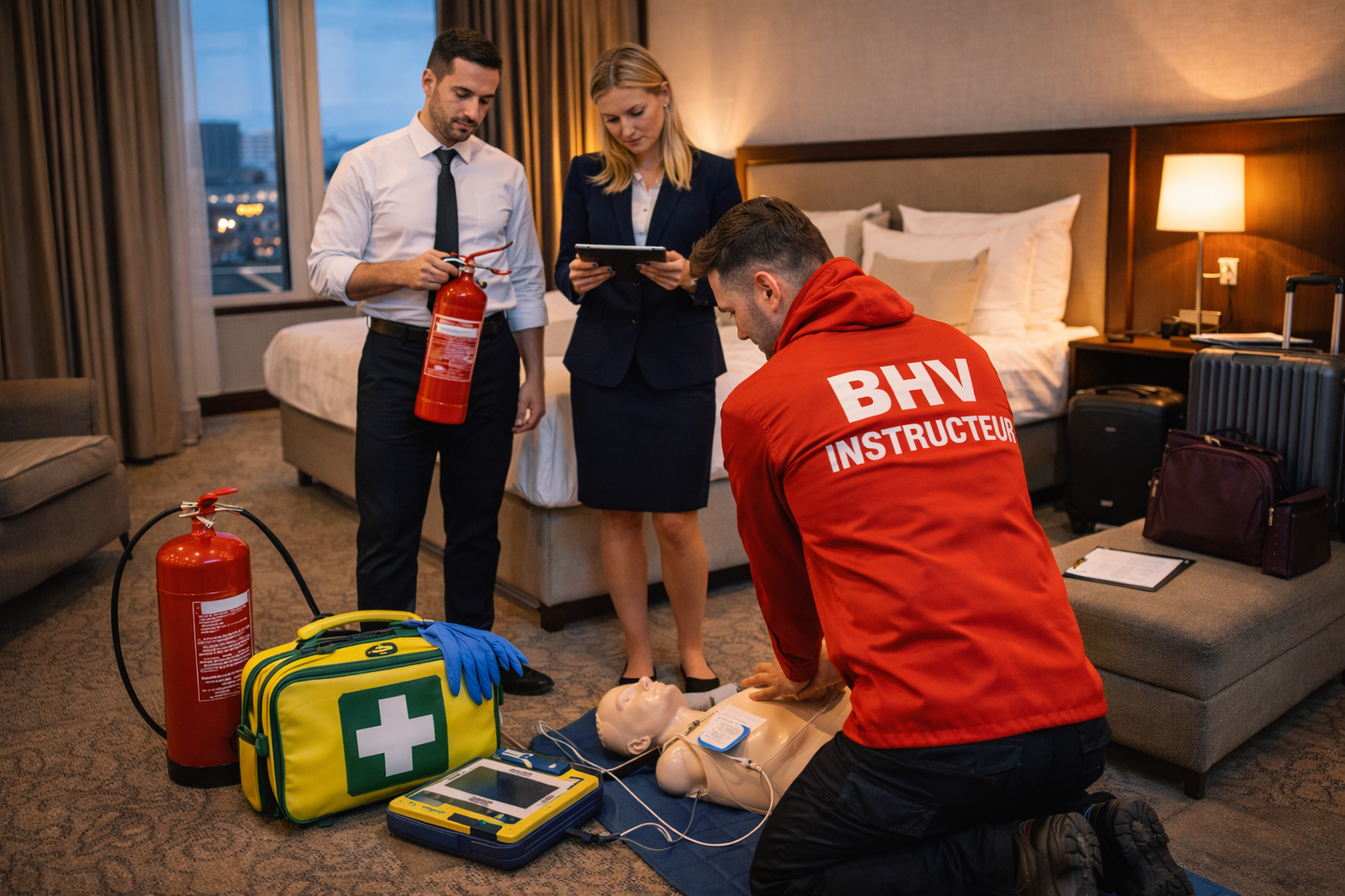 De horeca BHV basiscursus is een complete training gericht op het handelen bij noodsituaties in uw horecagelegenheid. Leer hoe u adequaat kunt reageren op brand, letsel en ontruiming.